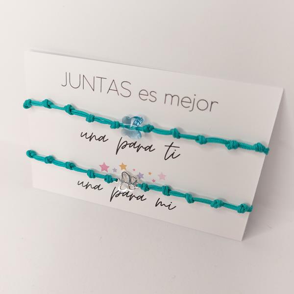 Las pulseras se presentan con una tarjeta que dice «Juntas es mejor, una para ti, una para mi». Una bonita manera de sellar vuestra amistad, es un dúo de pulseras que podéis compartir. Una para ella y otra para ti.