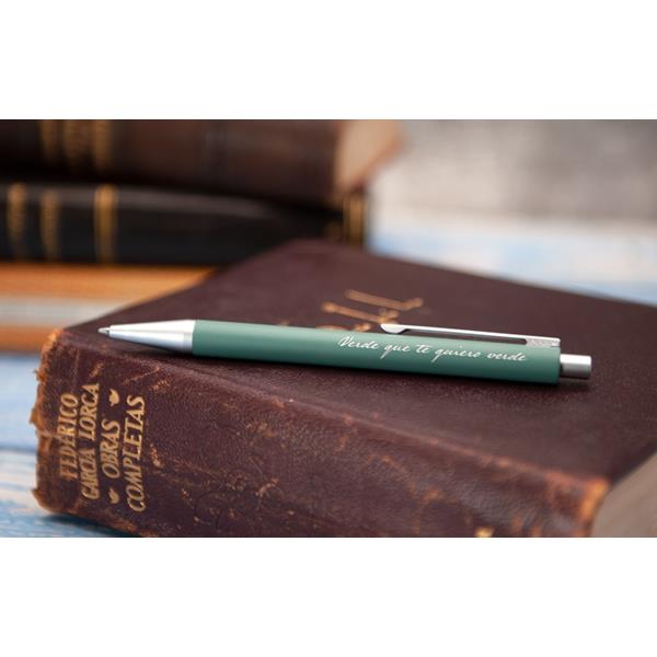 Nueva colección BOOKS de bolígrafos homenaje a un gran poeta español: Federico García Lorca, que dejó su huella en la literatura. Cada bolígrafo es una pequeña obra de arte con un estuche regalo decorado a medida y cuerpo de aluminio grabado con una cita inspiradora del autor, simple y elegante. "Verde que te quiero verde"