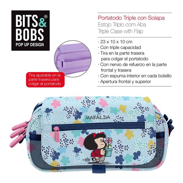¡Descubre el estuche escolar con solapa y tres compartimentos independientes de Mafalda, un diseño único que combina funcionalidad y estilo para todos los amantes de esta entrañable y filosófica personaje!