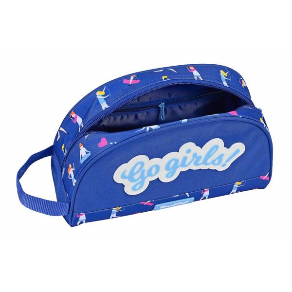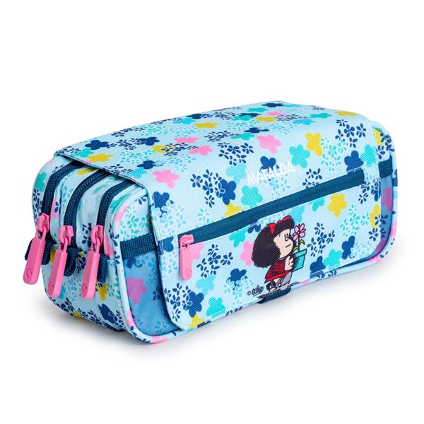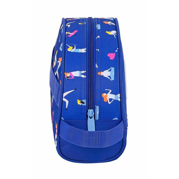 Todo lo que le puedes pedir a un neceser o bolsa de aseo, este lo tiene¡ Bonito estampado de fondo azul vibrante.