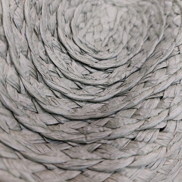 Composición: 100 % papel tipo rafia. Adorno de metal en zamack. Tira decorativa con cordón anudado.